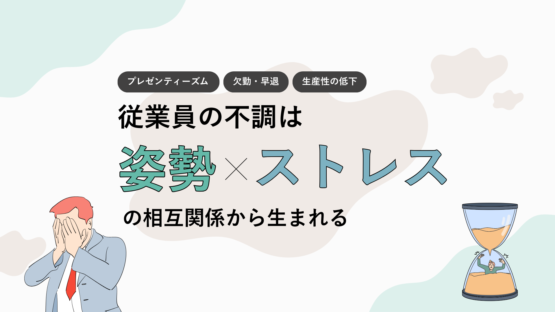 テレワーク、長時間のデスクワーク、オンライン会議の増加――。現代の働き方は、従業員の心身にさまざまな負荷を与えています。肩こり、腰痛、頭痛、慢性疲労、集中力低下、イライラ……。一見バラバラに見えるこれらの不調には、共通する「根っこ」があります。“姿勢の乱れ”と“ストレス反応”が互いに影響し合い、不調を加速させているという点です。